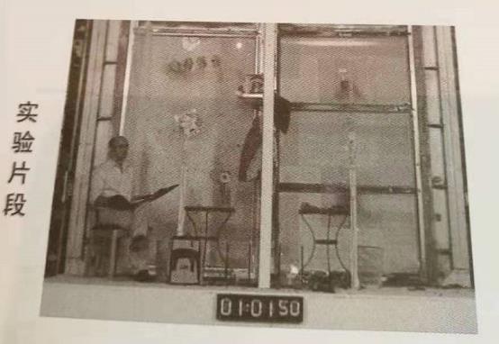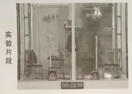 試驗工具:木塊、尼龍窗簾、外套、書籍、書包、木椅、玩具、塑料風扇、收音機、記事本、花瓶、垃圾桶、花等,置于防火玻璃背面,兩者設置只有玻璃不同,其余配置完全相同。